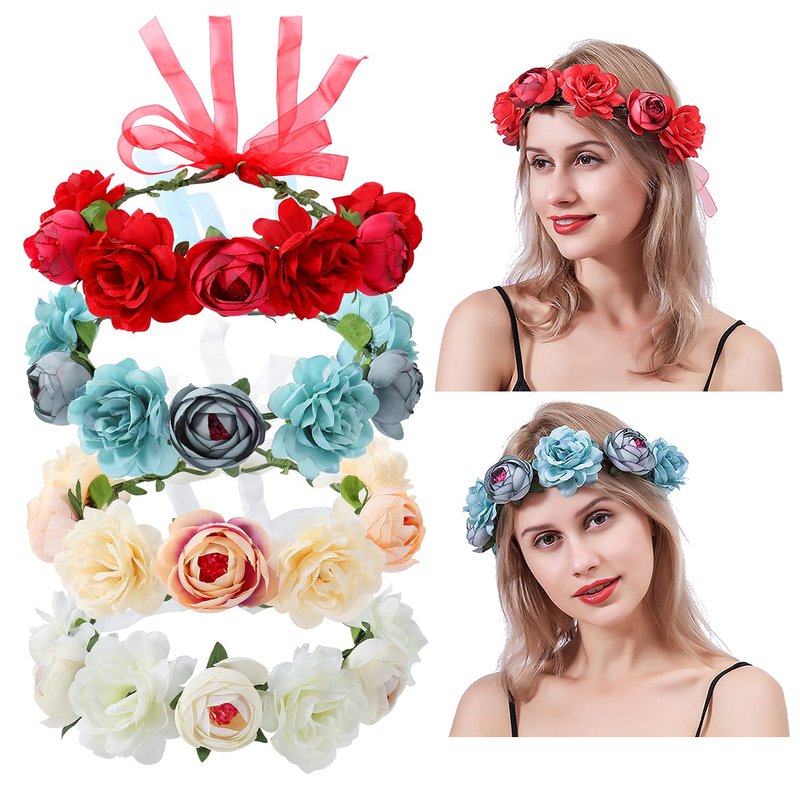 - 【PERFECT FOR VARIOUS OCCASIONS】--These beautiful flower headbands can be wore in different occasions, for instance, wedding, birthday party, holiday, festival, Christmas, daily life, or as photo props when you or your princess take photographs. Package includes 4PCS wreaths like photo show in the good package.