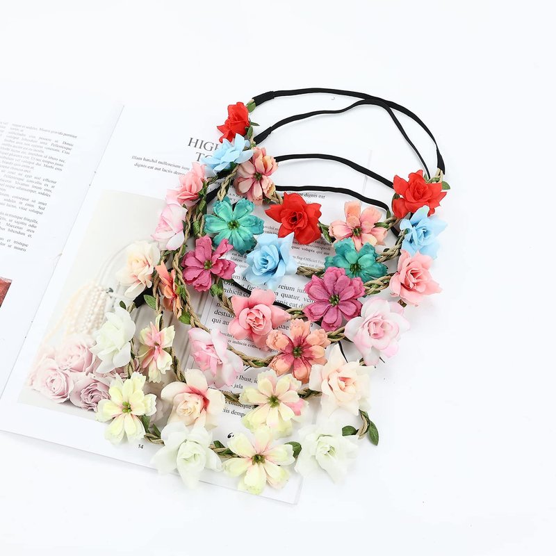 - 【PERFECT FOR VARIOUS OCCASIONS】--These beautiful flower headbands can be wore in different occasions, for instance, wedding, birthday party, holiday, festival, Christmas, daily life, or as photo props when you take photographs. Package includes 6PCS flower wreaths like photo show in the good package.
