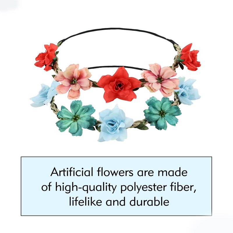- 【HIGH QUALITY MATERIAL】--All flowers are carefully handcrafted by high quality fabric and then attached on iron wire intertwined by green leaves. Black elastic band on the back ensures the comfort of wearing.