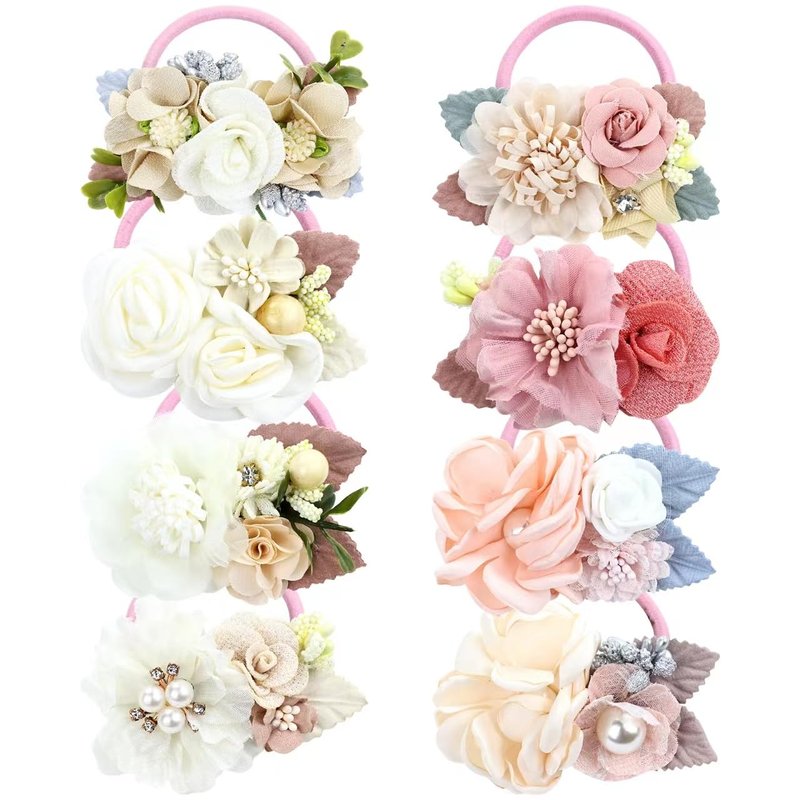 -Color: Flowers on the hair ties are mainly white, pink, beige, khaki, and yellow.