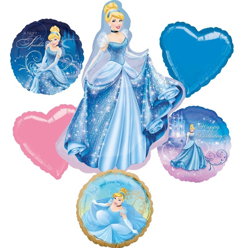 Cinderella Birthday Party 6pc Foil Balloons Bouquet Decorations