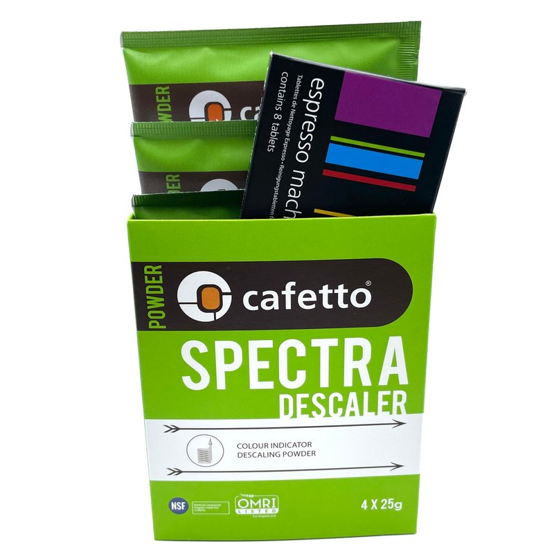 Cino Cleano Espresso Machine Cleaning and Descaling Bundle of 8 Tablets and Box of 4 Spectra Sachets for all Breville Machines