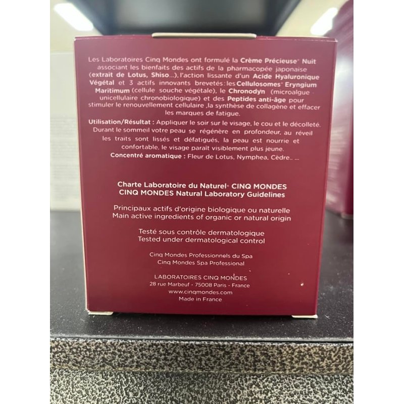 Cinq Mondes Precious Night Cream 1.7 Fl.Oz- Complete Support For Mature Or Dry Skin- Smooth Wrinkles, Increase Firmness And Even Skin The Tone - Hyaluronic Acid Plumps