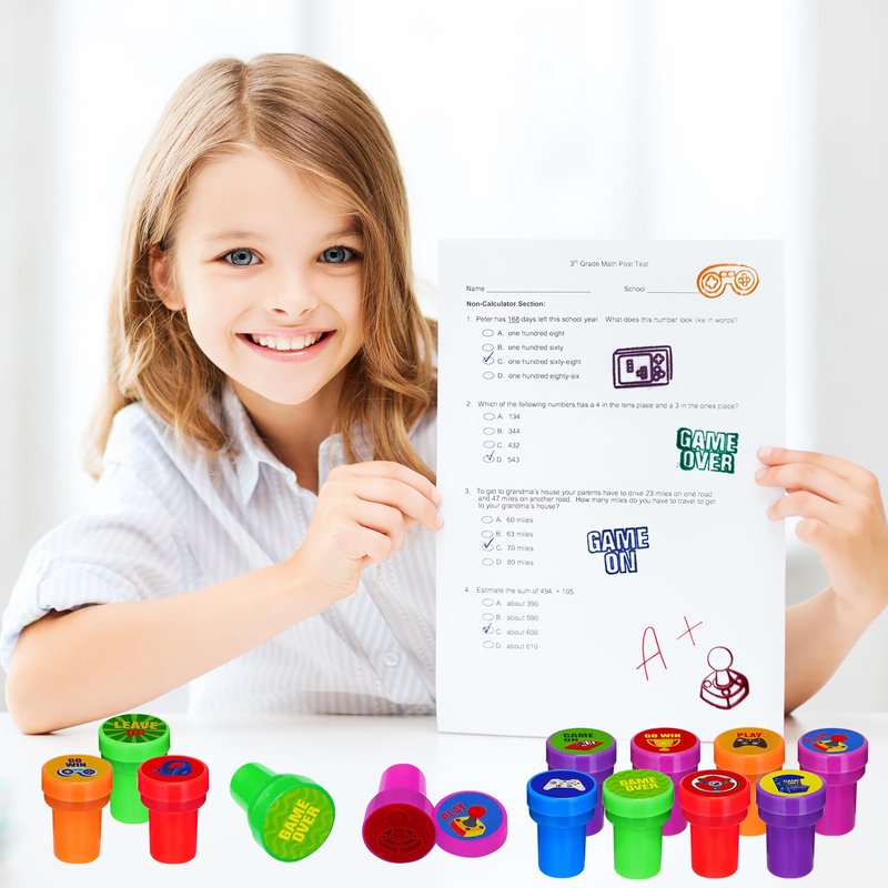 - Endless Fun:This game party stamps set creates joy and excitement. An excellent classic educational that provides hours of hands-on, screen-free play and learning. Great for party favor, teacher's classrooms, birthday party, school & classroom prizes, carnival prizes, stationery, greeting cards, scrapbooks design, and all other uses.