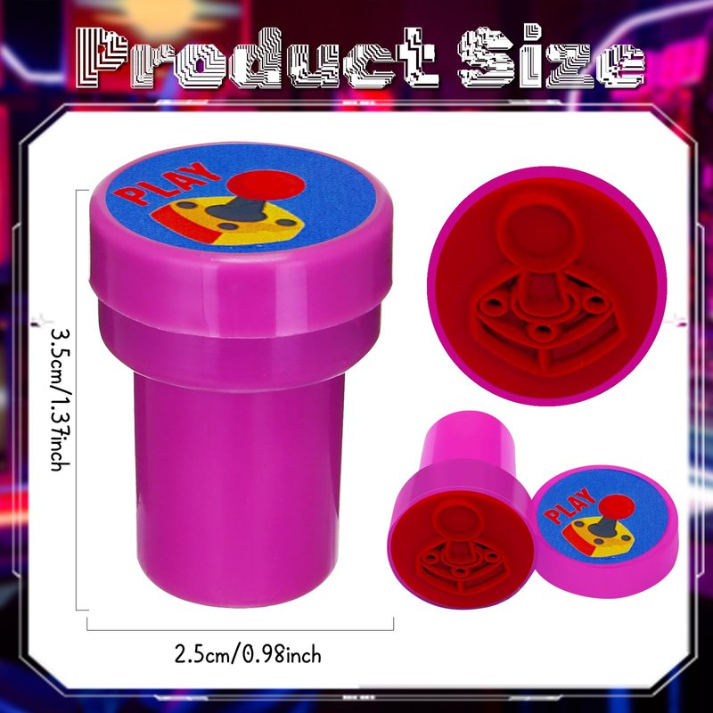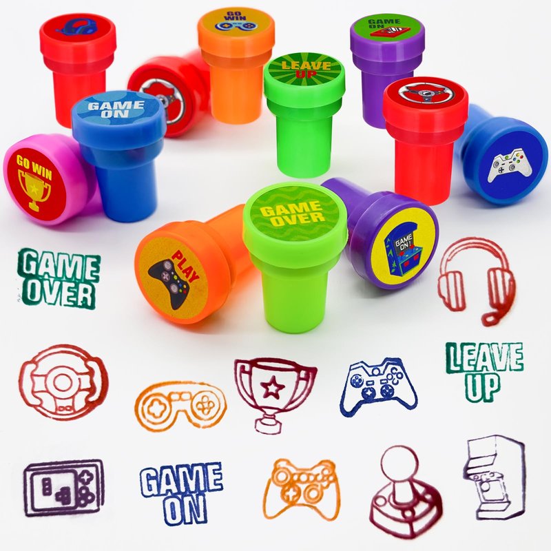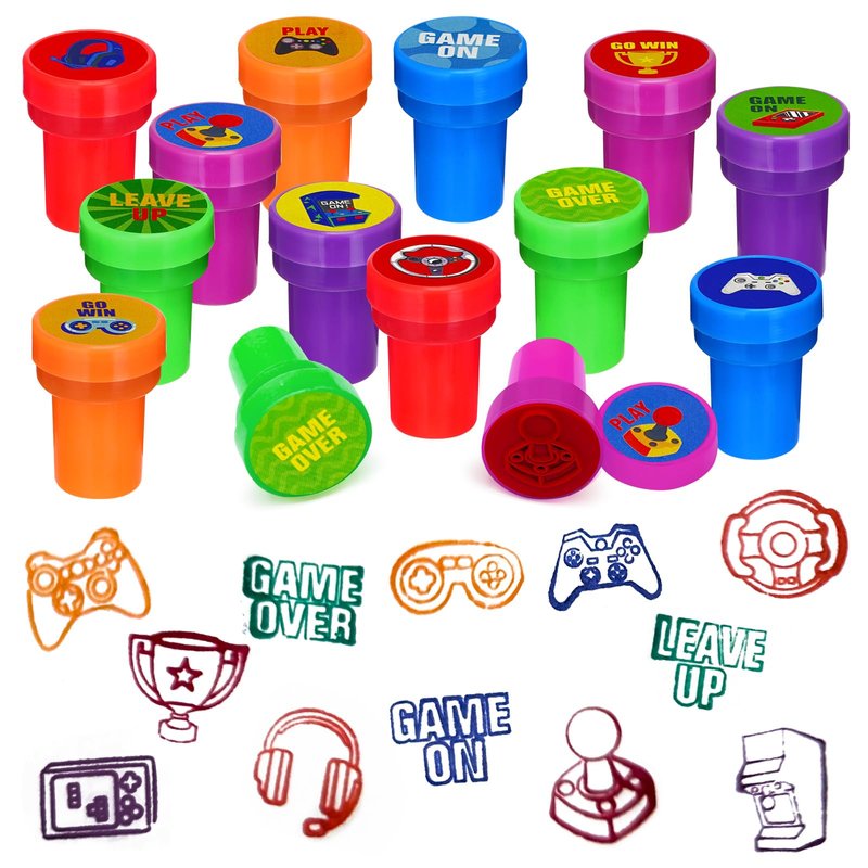 - Package Includes:24 Pcs game party stampers with 12 different designs and colors, each stampers measures 1.5 inches tall, 1 inch in diameter.