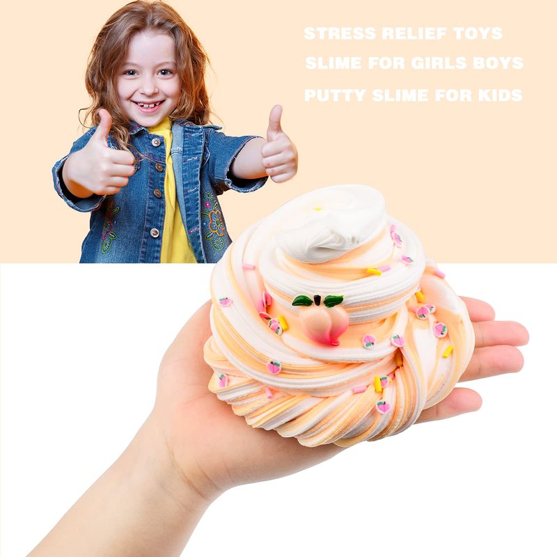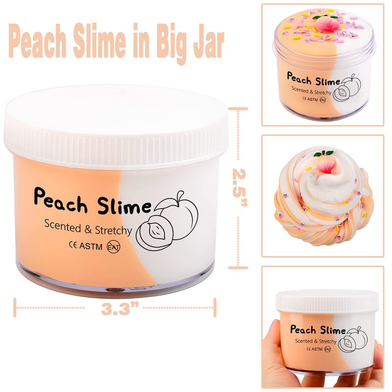 - ✶Slime Party Favors:Peach related products are one of the children's beloved toys, our peach butter slime is a perfect gift for girls and boys in various festivals, such as Christmas, Halloween, Valentine's Day, Easter, birthdays, etc