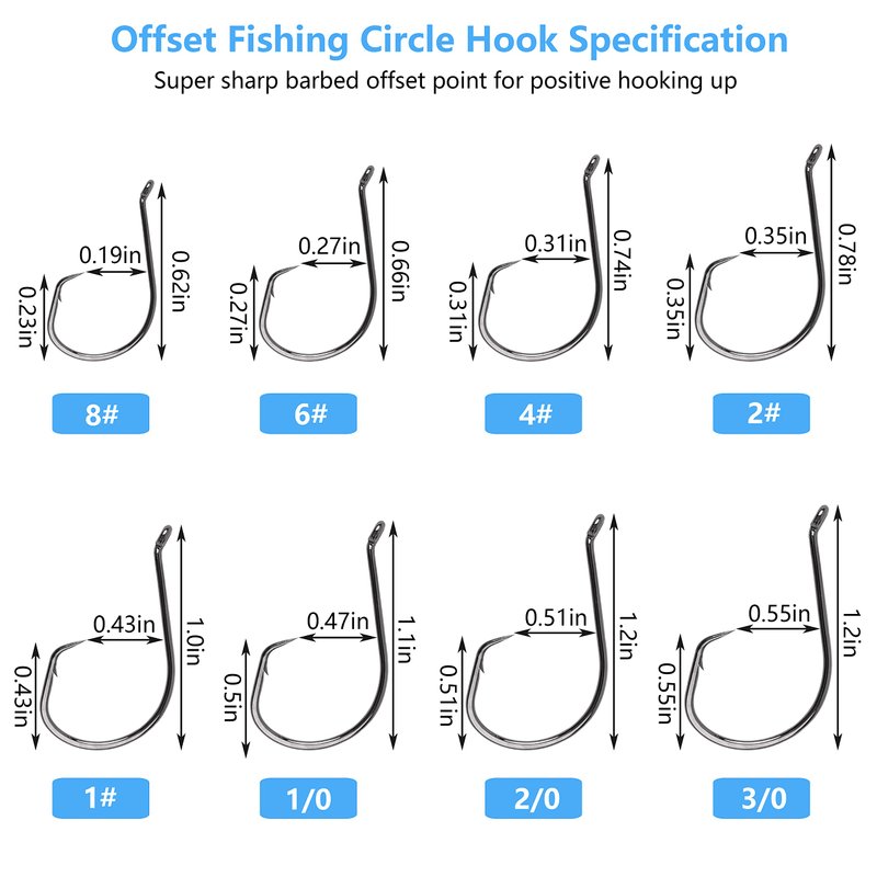 - 【Widely Used】Circle fishing hooks are ideal for freshwater and saltwater. Great for bass, catfish, sea trout, carp, pike, tuna, etc.