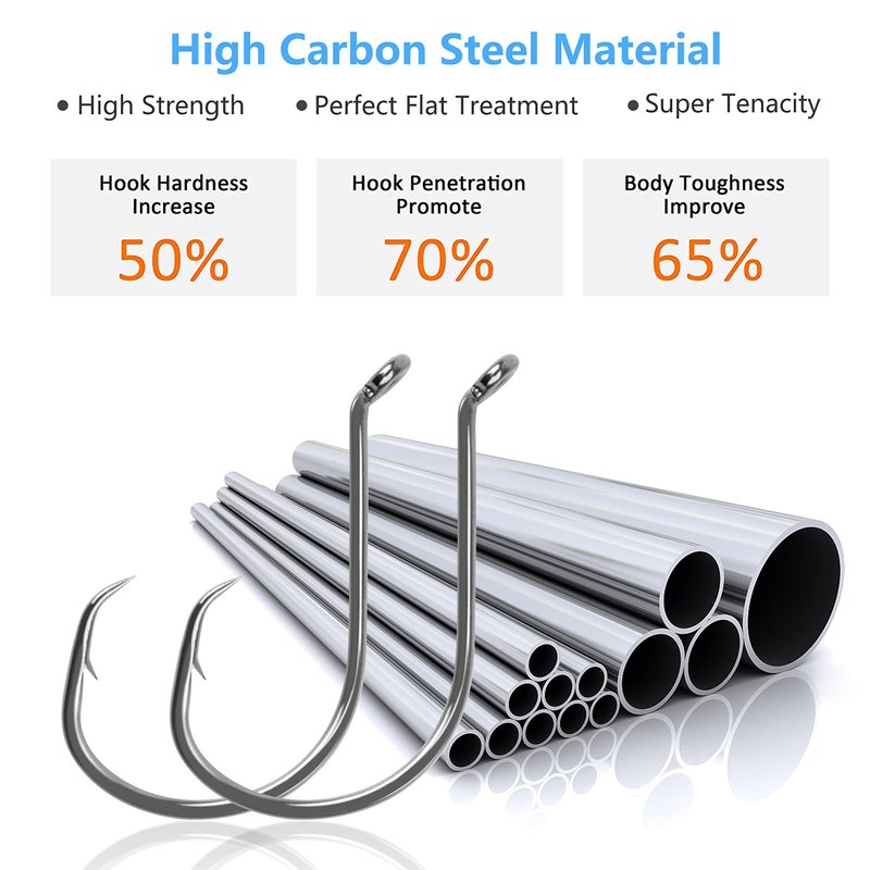 - 【Durable Material】These saltwater fishing hooks are made from premium high carbon steel. Trusted for durability, high corrosion-resistance and nice strength.