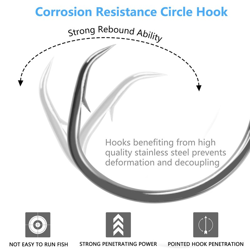 - 【Saltwater Fishing Gear】The circle hook can be used for a whole range of applications from drifting with live bait or trolling, like worm bait and other soft plastic baits, perfect match for circle hooks.