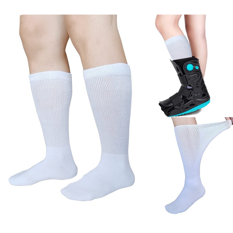 - REDUCE SKIN IRRITATION: Walking boot can really agitate your skin, These foot brace cast socks are intended to help reduce skin irritation while wearing a foot brace or walking boot. Beside the protective function, non binding design also makes it useful for diabetic foot, leg fatigue, foot, circulatory problems, edema, and neuropathy. This extra wide socks will be great idea for cast foot.
