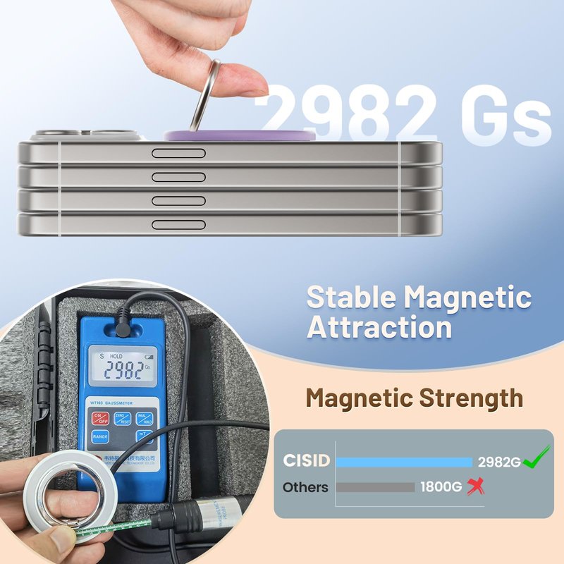 - Upgrade Magnetic Force: To solve the common magnetic-force issue of this kind of phone grip, we upgraded this magnetic phone ring to a powerful 2982G force, ensuring a secure attachment to your phone's back, providing peace of mind against accidental drops