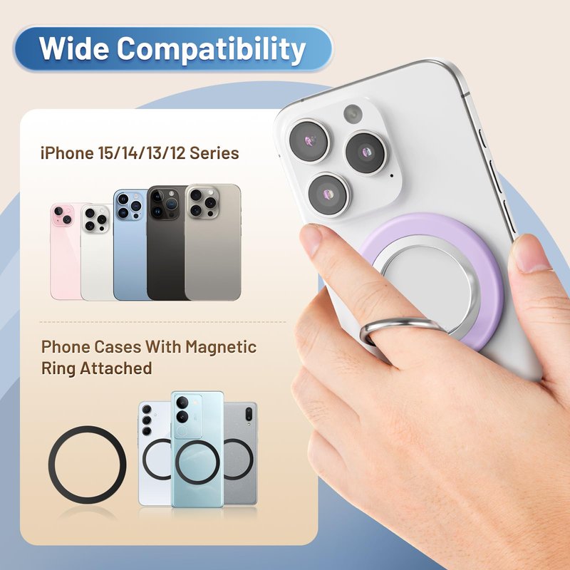 - Compatibility: This finger holder for back of pone is compatible for iPhone 16/15/14/13/12 Series, MagSafe Cases, or all normal non-magnetic cases with magnetic ring attached. With this magnetic phone grip on your phone back, you will keep your phone always safe in hand, get to have your phone supported at best angle while watching videos or facetime