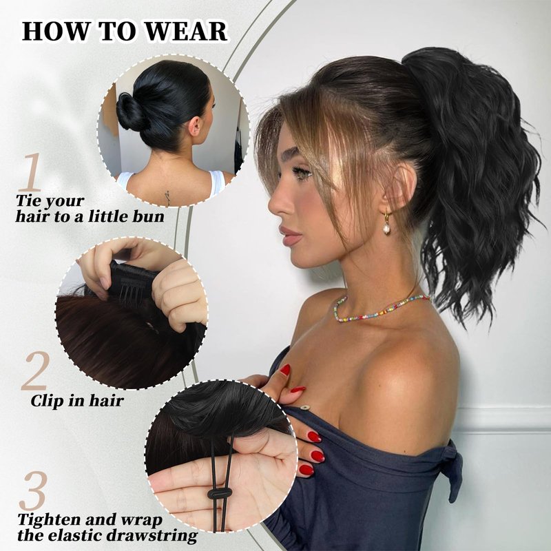 - 💖【Get the hairstyle you want in minutes】Simply tie your hair into a small bun,place the ponytail extension on top,clip it into place,and tighten the drawstring to secure it.Get the perfect hairstyle in just minutes.Great for time-saving and beginner-friendly.
