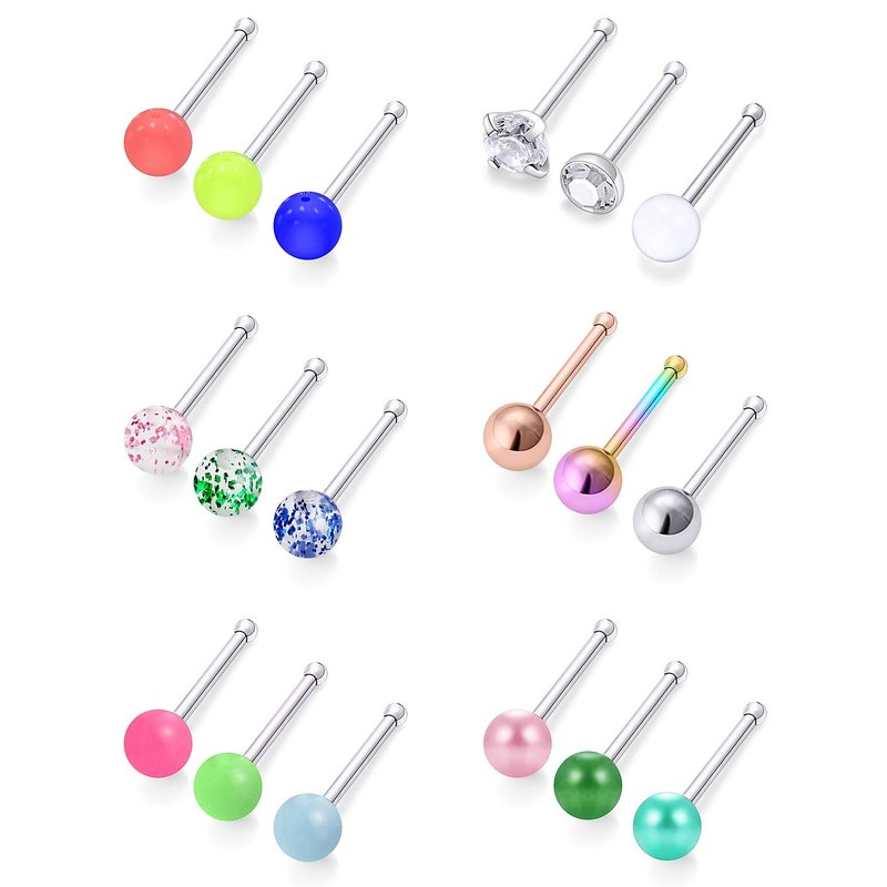 - COST-EFFECTIVE--One Order Includes 18 Pcs Nose Ring,18G(1.0mm),Barbell Length:6.5 mm,top Balls:3mm.Exquisite Set in Reasonable Price,Deserve to Purchase.