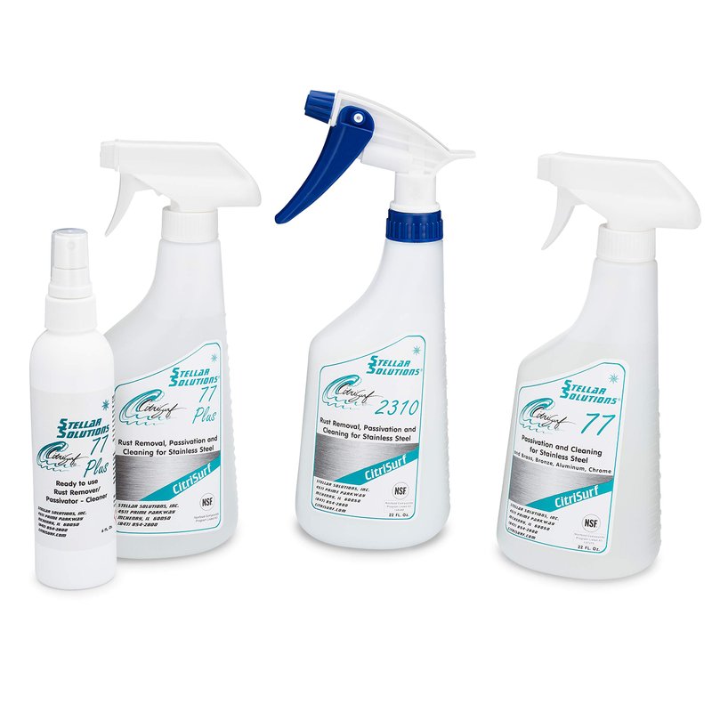 In harsh environments, stainless steel is susceptible to corrosion. Over time, rust discolors, weakens it and can eventually render it unusable. CitriSurf 77 Plus Stainless Steel Cleaner and Passivation Formula not only removes rust, but protects the surface from harsh environments by forming an inert surface layer which helps prevent future rust and corrosion.