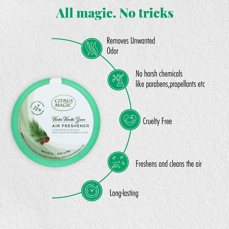 - ALL MAGIC, NO TRICKS: Experience the magical fragrance of the forest with our refreshing blend of cedar, balsam, winter berries, and icy citrus with this holiday air freshener that eliminates foul odors and fills the air with freshness.