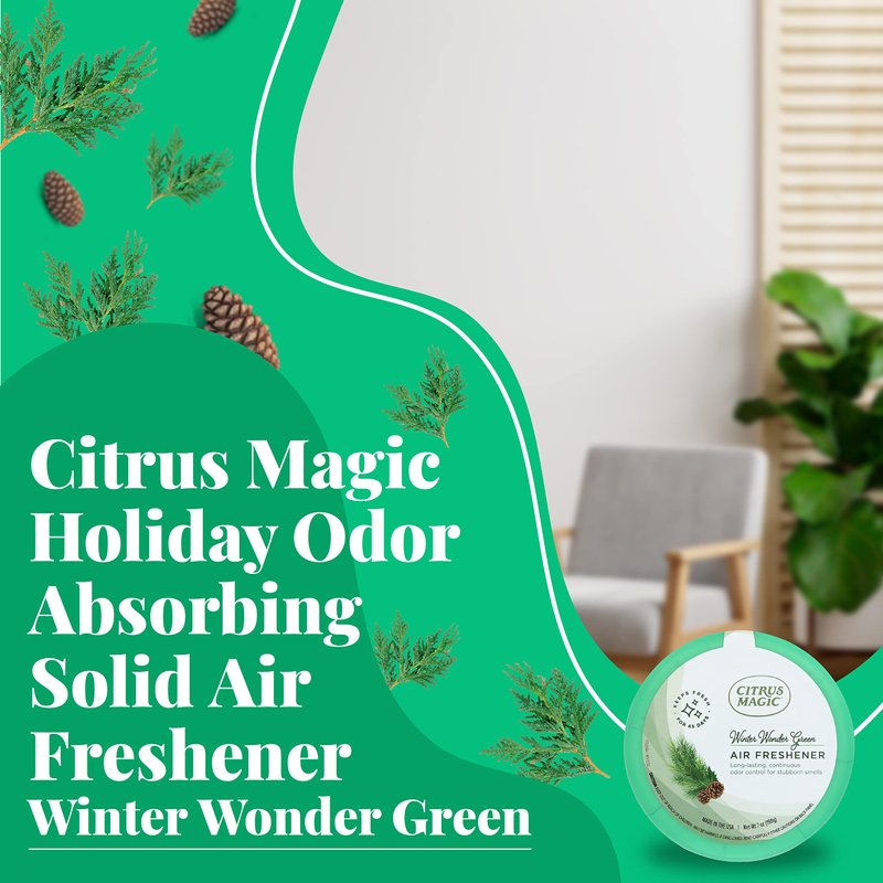 Citrus Magic Holiday Odor Absorbing Solid Air Freshener, Winter Wonder Green, 7-Ounce, Pack of 3