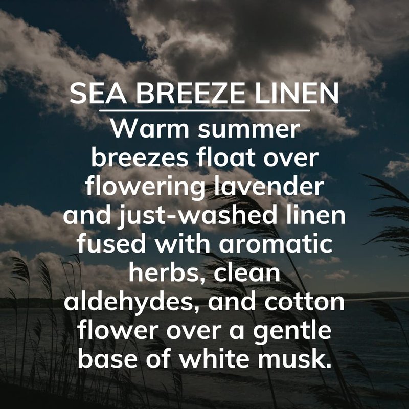 - SEA BREEZE LINEN - A refreshing mix of clean cotton, vibrant citrus and fragrant florals
