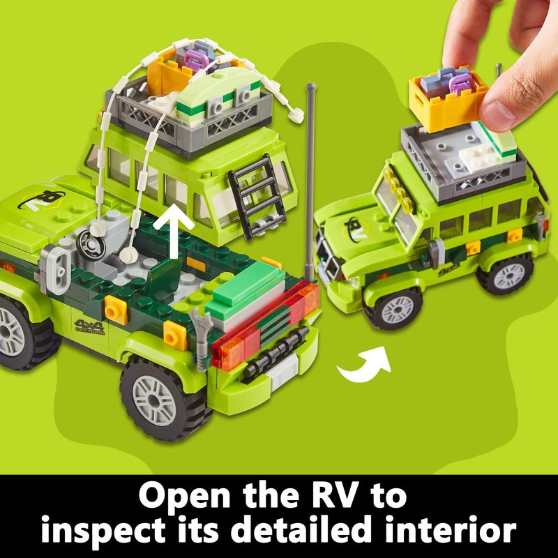 The City Camping RV Set is a captivating addition to city sets, designed for creative play for children aged 6 and above. The set features a holiday camping car with a detailed interior, securely attachable camping gear, and a detachable roof for immersive role-playing.