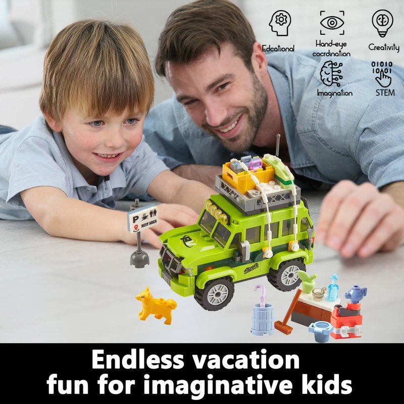 The set facilitates vibrant role-playing games where children can drive to favorite locations, set up outdoor furniture, and enjoy a family picnic. Compatible with major brand city sets, offering endless possibilities for imaginative play and storytelling.