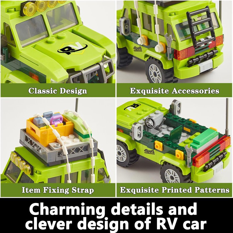 - 【City Car Set】Camper car toy comes with camping accessories. Camping equipment can be securely fixed to the roof using white strap components, effectively preventing props from being lost. The removable roof allows children to have fun role-playing