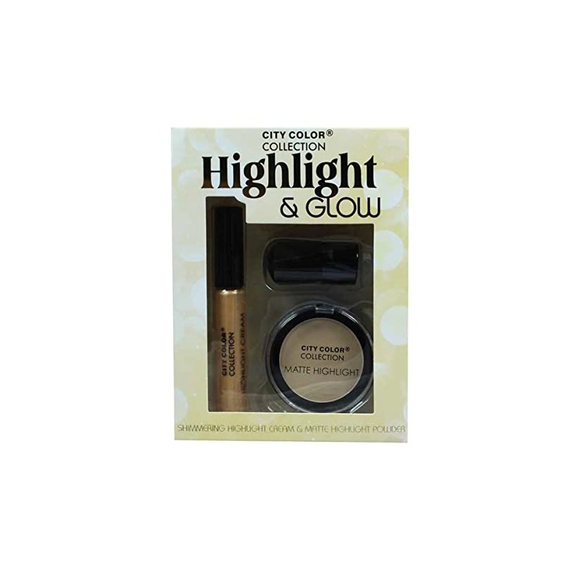 City Color Highlight & Glow Shimmering Cream Matte Powder w/ Face Brush Set