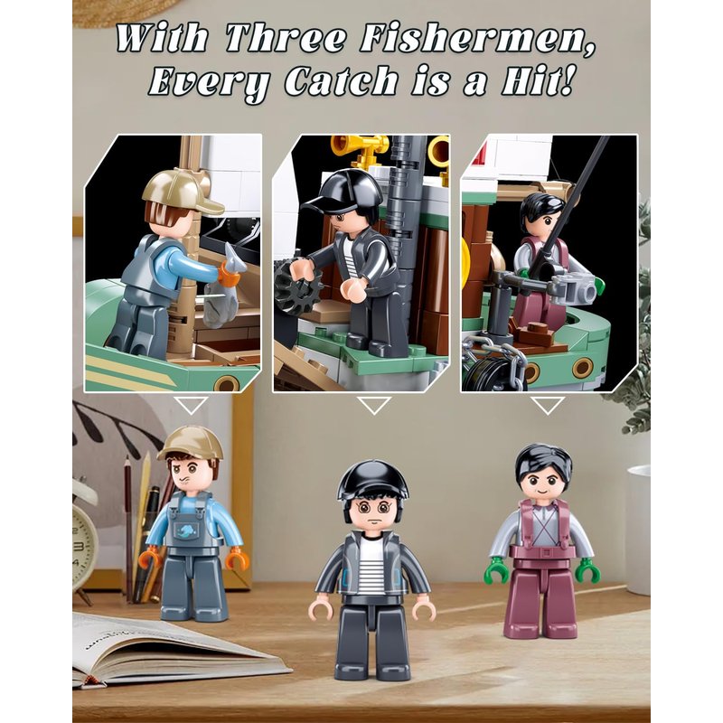 - Fisherman's Delight - Reel in the joy with this fisherman's paradise! Equipped with Fishing Rods, a Fishing Rod Holder, Fish Buckets, and Live Fish Storage, this fishing ship building set promises a bountiful catch. Picture the exhilaration of landing your catch and preserving it - a true fisherman's dream