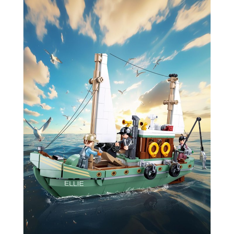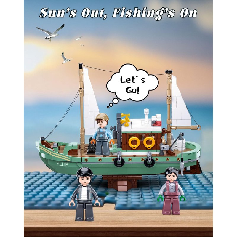 - Intricately Designed Fishing Ship- Featuring a Mast with Rigging, Steam Whistle, Anti-Collision Tire, Display Stand, and Life Buoy, each component of this fishing boat building set aims to immerse you in an authentic fishing adventure