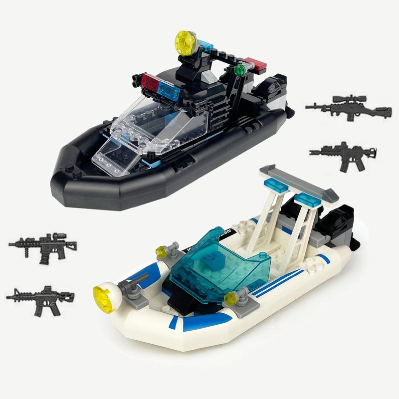 - Realistic Design: Detailed and colorful building blocks sets featuring City Police Speed Boat, Fire Rescue Boat, Guard Boat, and Patrol Boat.