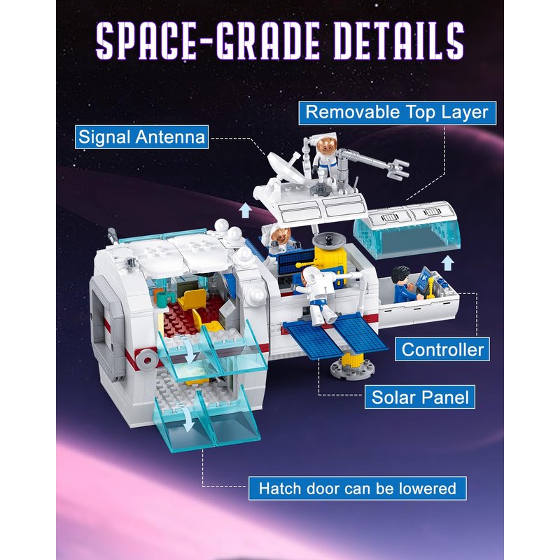 - 【Galactic Detail & Playability】Discover the intricacies of space travel with this richly detailed space station! The Signal Antenna connects to distant worlds, the Removable Top Layer reveals hidden compartments, the Controller orchestrates missions, Solar Panels harness cosmic energy, and the Hatch Door lowers for EVA access. High playability encourages hands-on learning about space technology.