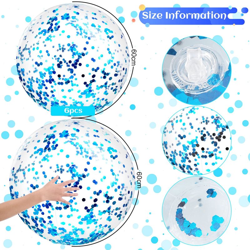 - Size and Quantity: the size before inflation is 24 inches/ 60 cm, and the size after inflation is about 16 inches/ 40 cm, the package offers you 6 pieces of sequined glitter balls, in ample quantity and right size, bright color, suitable for your summer party, you can share with your friends