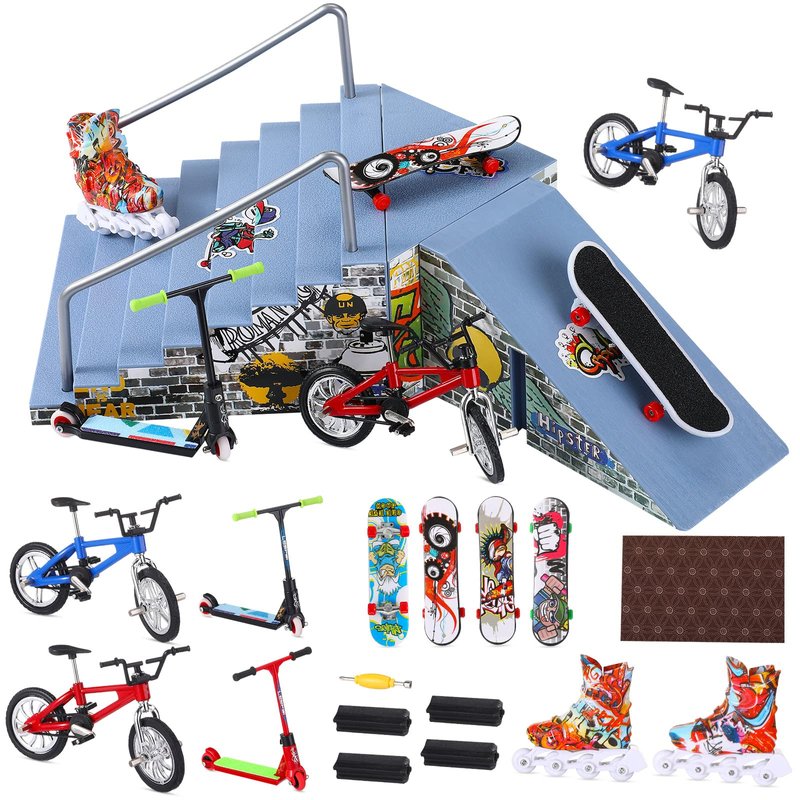 Civaner Fingerboard Skatepark Set 24 Pcs Mini Finger Toy with Finger Skateboards Ramp, Finger Bikes, Finger Scooter, Finger Skates for Skate Lovers Gift