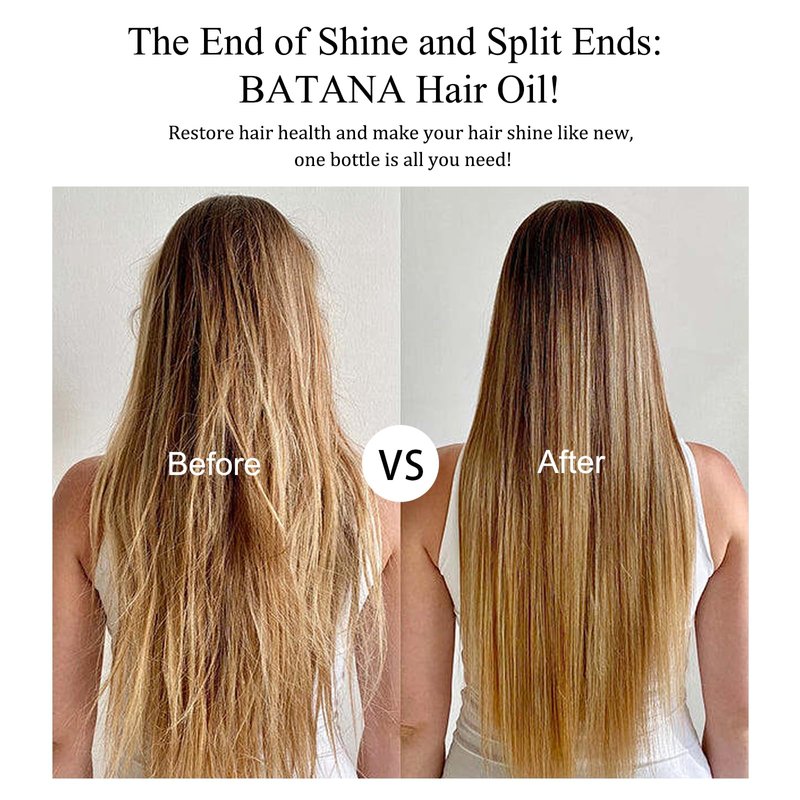 - Repairs Damaged Hair: BATANA OIL is your hair's best friend when it comes to damaged locks. It penetrates deep into each strand, repairing split ends, dryness, and damage, leaving your hair healthier and smoother.