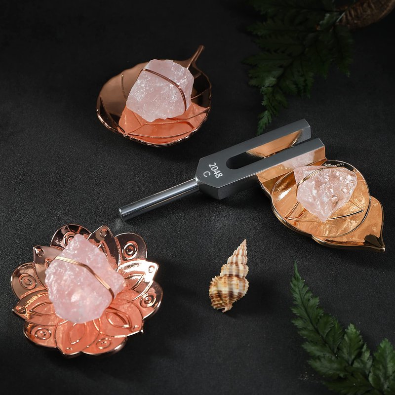 Ckakra Sound Therapy Tuning Fork,2048Hz Healing Rose Quartz Crystals Set, Meditation,Mindfulness,Zen Decor,Self Care Gifts for Women, Lilac Box, Rose Gold