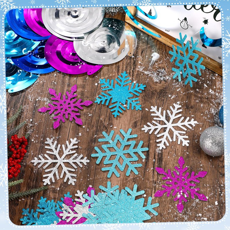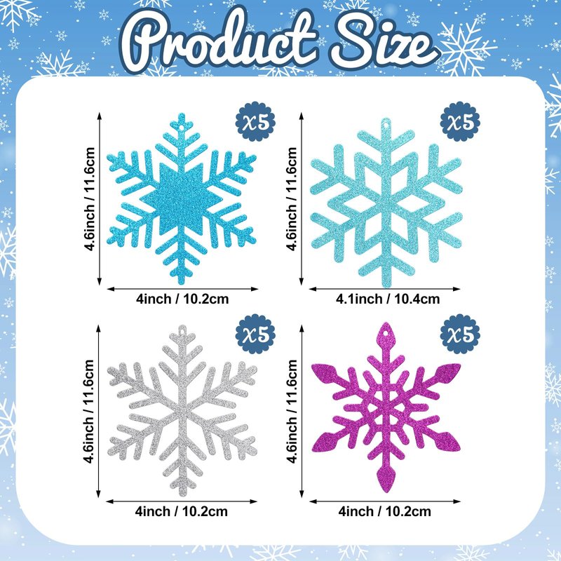 - Winter Snowflake Theme Design: each glittering snowflake cutout adopts double-side design in 4 Colors; Each Snowflake measures about 4.64 inch; The snowflakes of various shapes can quickly catch the eye and you can see winter decorations from different angles; Combine with exquisite hanging swirls, they will be a beautiful decoration that everyone will love