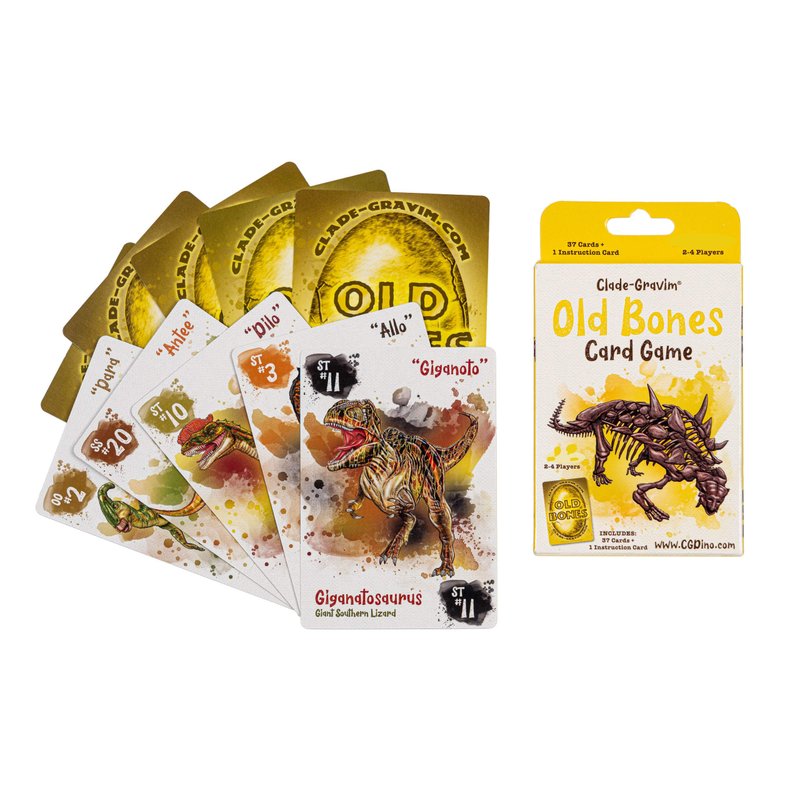 - Old Bones has 38 cards and Go Dino has 37 cards, both include instructions.