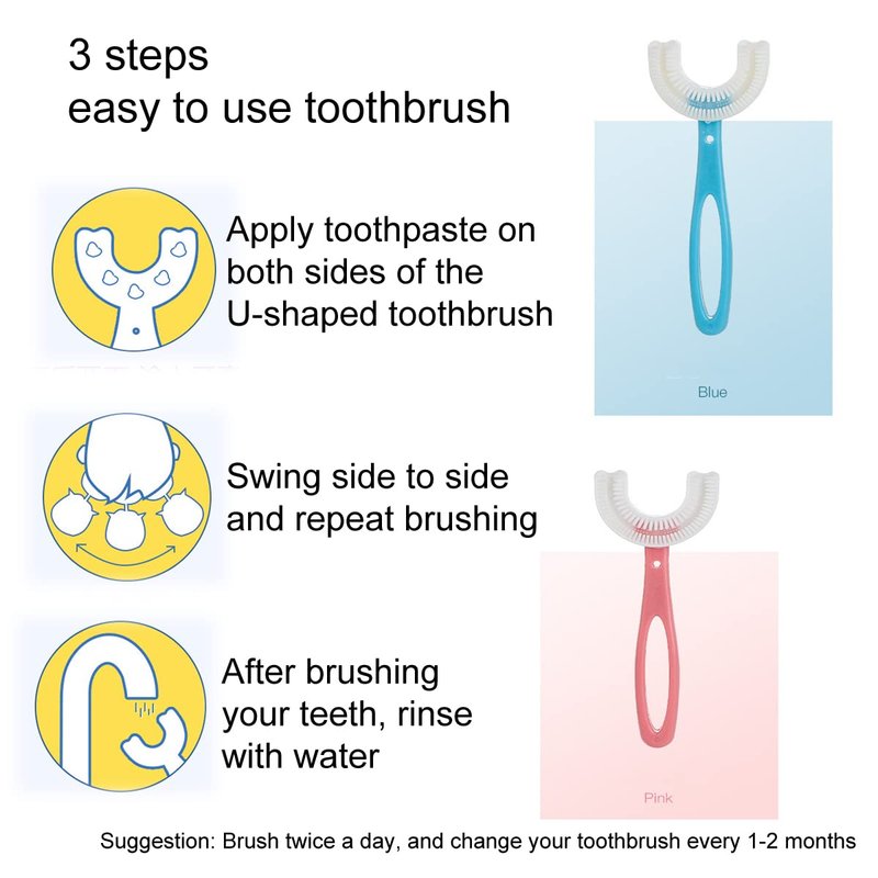 - Silicone manual U-shaped kids toothbrushes for kids 6-12 yeas, make tooth brushing easy and funny for kids.