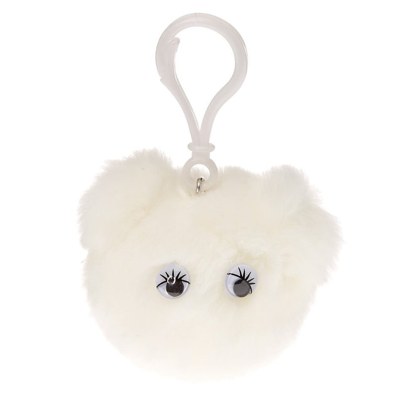 - The white pom features googly eyes with lashes and a push clip.