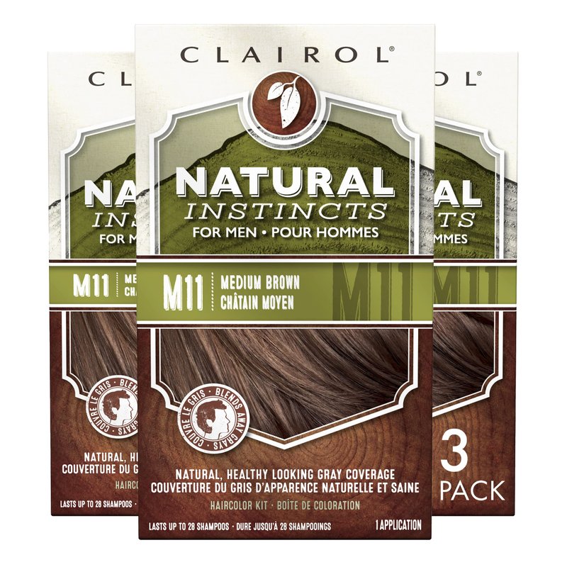 Clairol Natural Instincts Semi-Permanent Hair Dye for Men, M11 Medium Brown Hair Color, Pack of 3