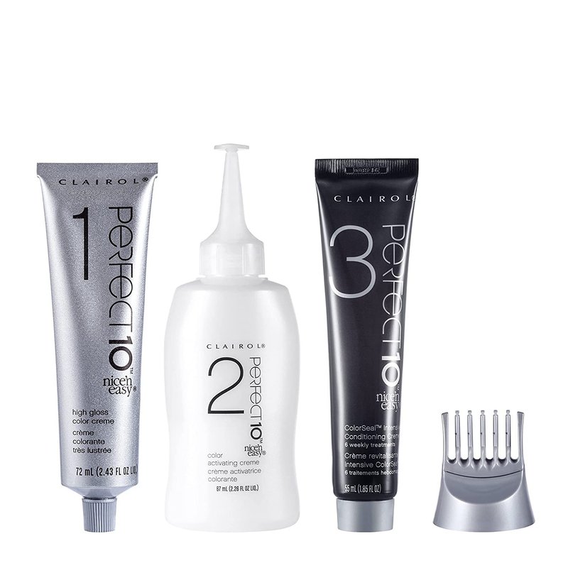 - THE PERFECT 10: The Clairol Nice ‘n Easy Perfect 10 Permanent Hair Dye Kit provides 100% gray coverage and stunning color