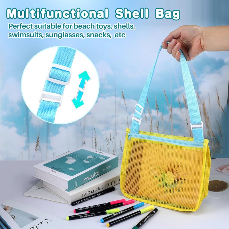 - [Good for Carry] Perfect for carry things like beach toys, shells. With adjustable shoulder strap, kids can collect the shell in mesh bags, beach toys and anything they pick on for fun at the beach into it. Special for kids toddler boys girls age 3 4 5 6 7 8 year old. Bag Size:9.8*7.9*3.1inch