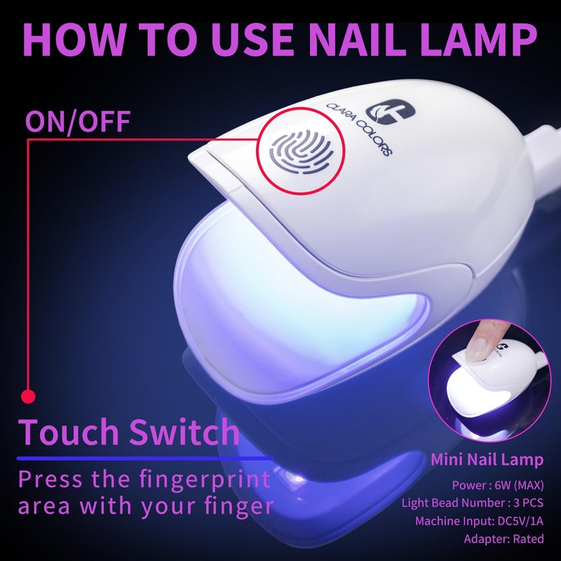 - 【How to use LED lights】Step 1: Connect the USB cable; Step 2: Use your finger to press the fingerprint switch on the lamp, which is a touch switch. Step 3: Place the finger you want to operate under the lamp.【Portable Nail Lamp & Cure all Gel】:Our Mini Nail Lamp easy to be carried! It can assist you on all kinds of nail arts, can cure base gel & nail glue, gel nail polish, top coat and nail extension gel.