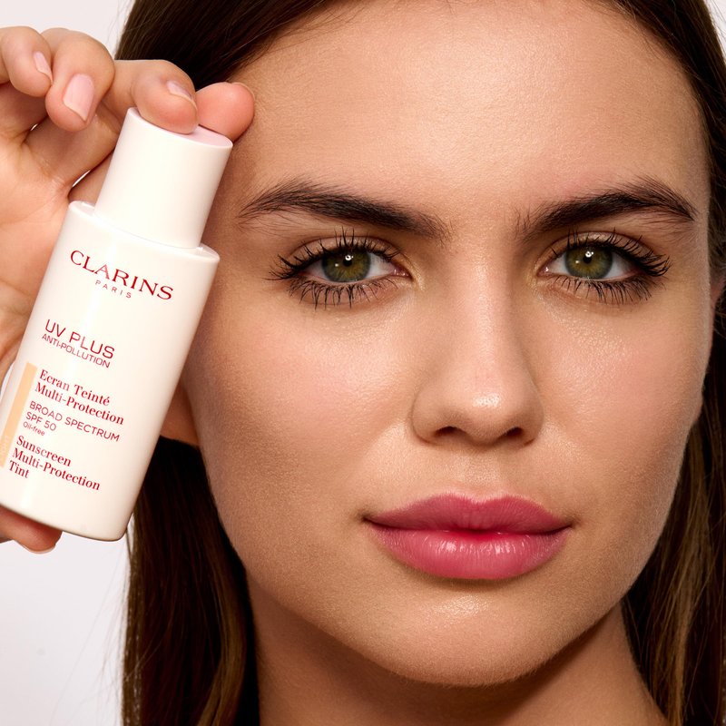 - Shield skin from daily aggressors and pollutants with this tinted face sunscreen. Formulated with Clarins' Anti-Pollution Complex to protect skin from indoor and outdoor pollutants, and Hyaluronic Acid to boost hydration.