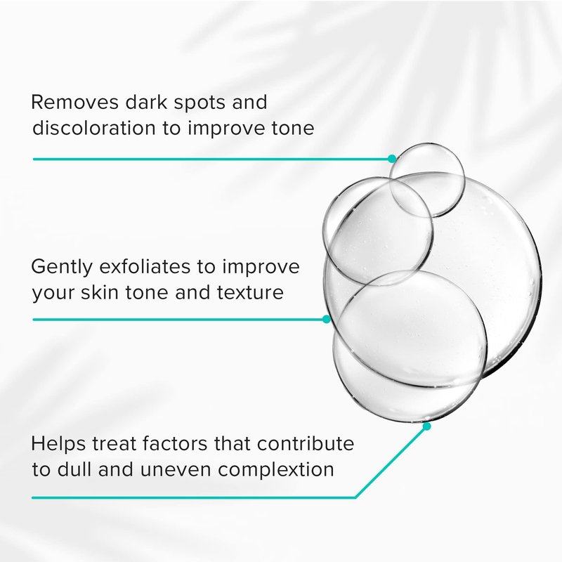 - Gently reduces dark spots and discoloration