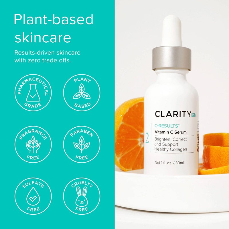 ClarityRx C-Results Vitamin C Brightening Face Serum, Natural Plant-Based Anti-Aging Facial Treatment for Dark Spots & Acne Scars (0.5 fl oz)