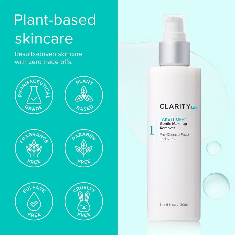 ClarityRx Take It Off Gentle Face & Eye Makeup Remover, Natural Plant-Based Calming Facial Cleanser with Antioxidants for All Skin Types, 6 oz