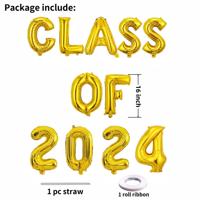 - PACKAGE: 16-inch Class of 2024 letter balloon ,one pack ribbon and Straw