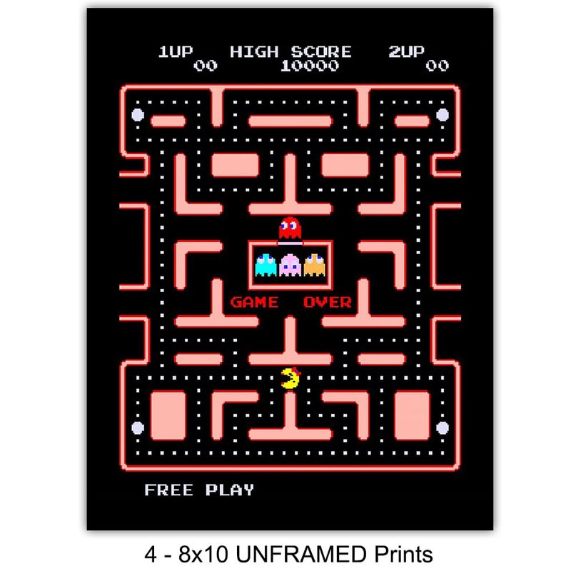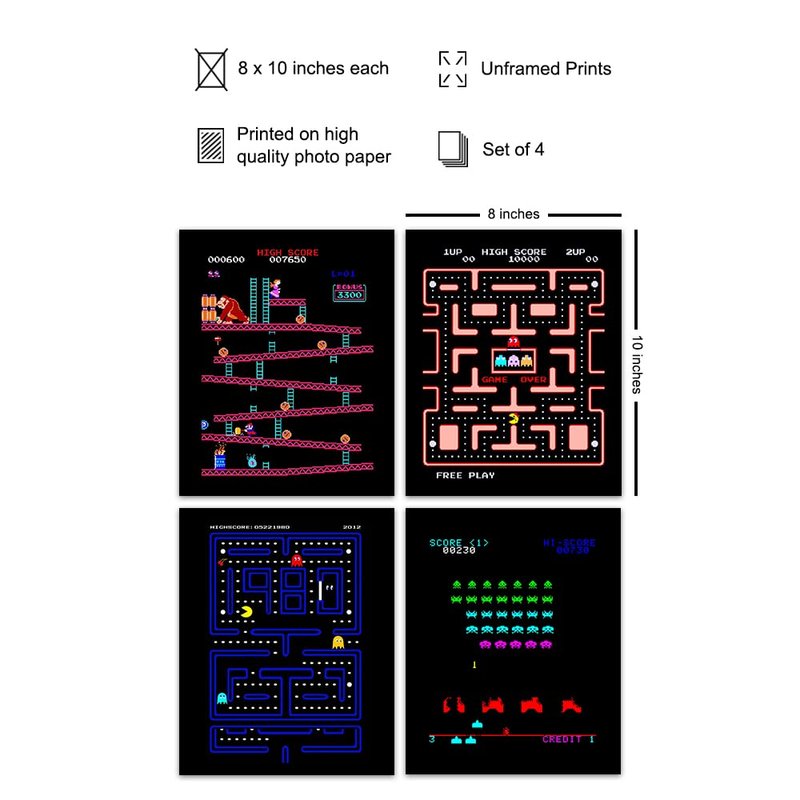 Classic Arcade Games Wall Art Prints - Arcade Decor - 8x10 Set for Man Cave, Den, Family Room, Bar, Bedroom - Gift for Gamers, Video Game, Pacman, Ms Pacman, Donkey Kong, Space Invaders Fans