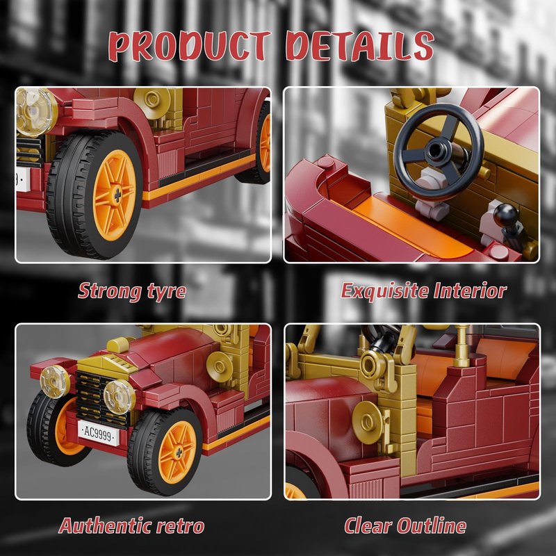 - Collection of theVintage Car Building set:This car building kit is a cool model toy and a set that can be added as a collectible, restore the real car to the greatest extent, and every detail is amazing.