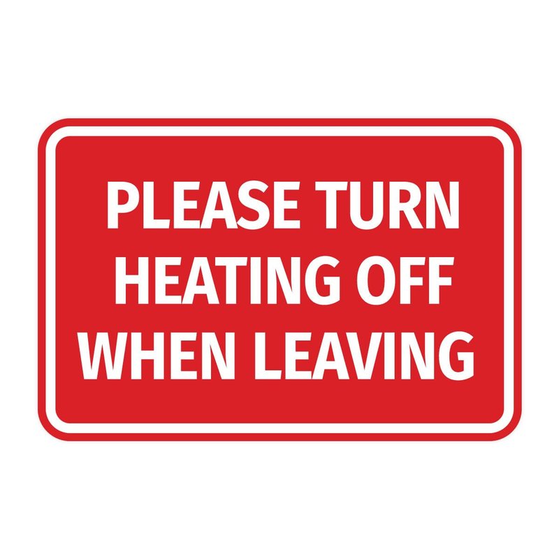 Our Signs ByLITA Classic Framed Please Turn Heating Off When Leaving Sign can be attached to the door, wall or window. Our signs are designed and manufactured by us. The signs are made out of durable material that is weather resistant. Each sign comes with an adhesive foam backing, allowing them to be attached to any flat surface. Comes in multiple colors. Our turn heating off signs are great for your home, property or office. Small sign is 4"H X 6" W